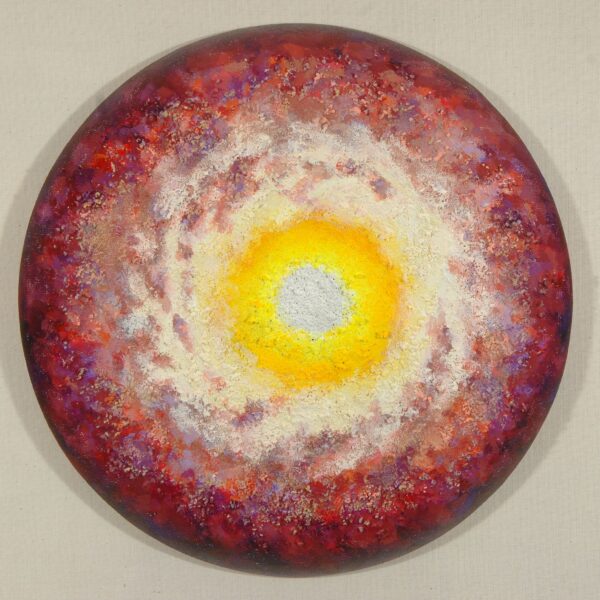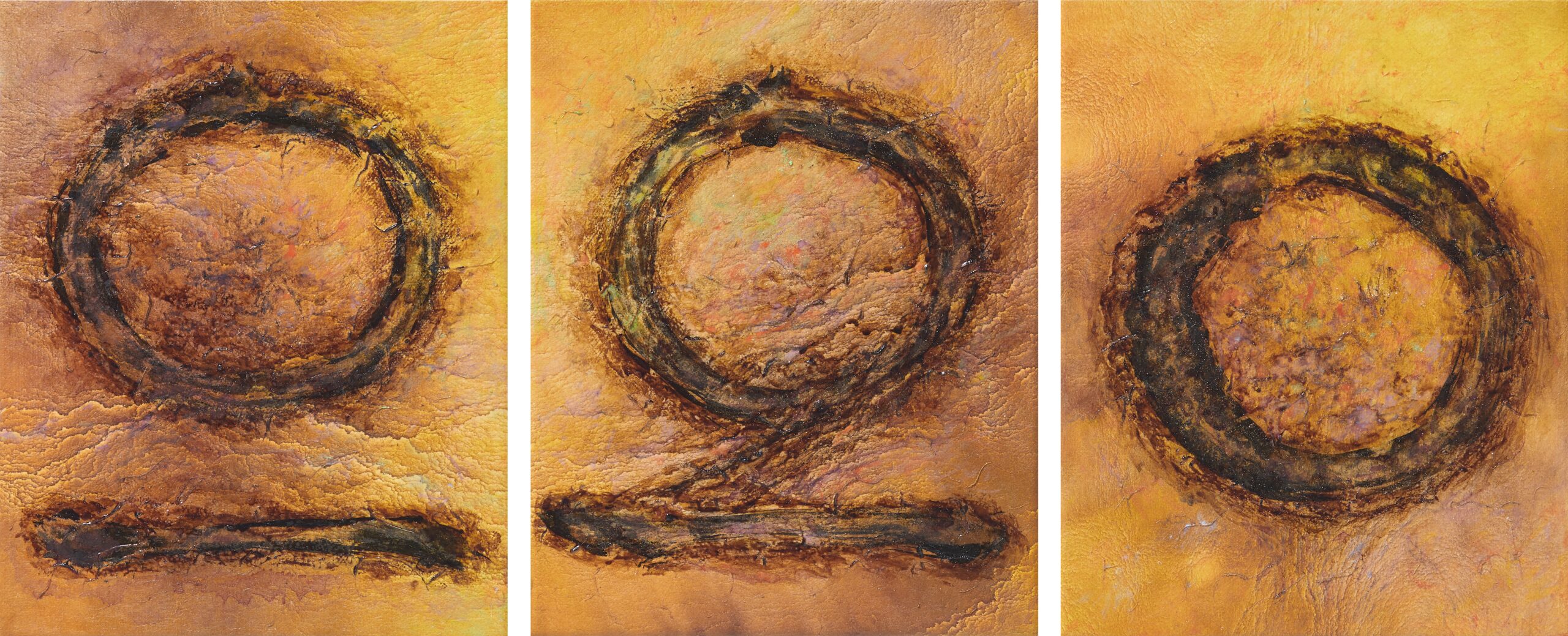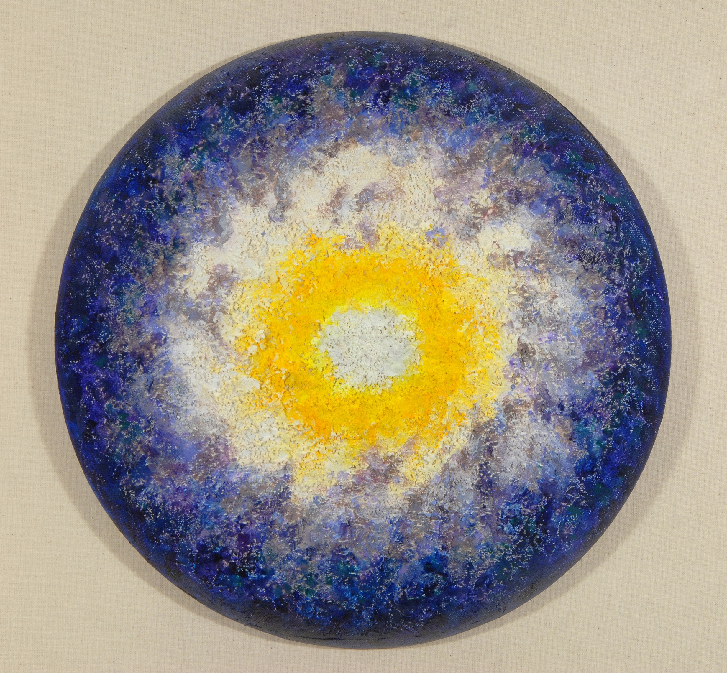Recently, I have become interested in ‘space’ while searching for my essence and identity from a cosmic point of view. It was intended to capture the cosmic characteristics of the part and the whole, and the whole which is the part in the canvas. In the relationship between the microcosm of “human” and the universe, the mind and the Sun become one, and also Heaven and Earth become one with humans. I created the pieces thinking about the vessel that embraces the universe.