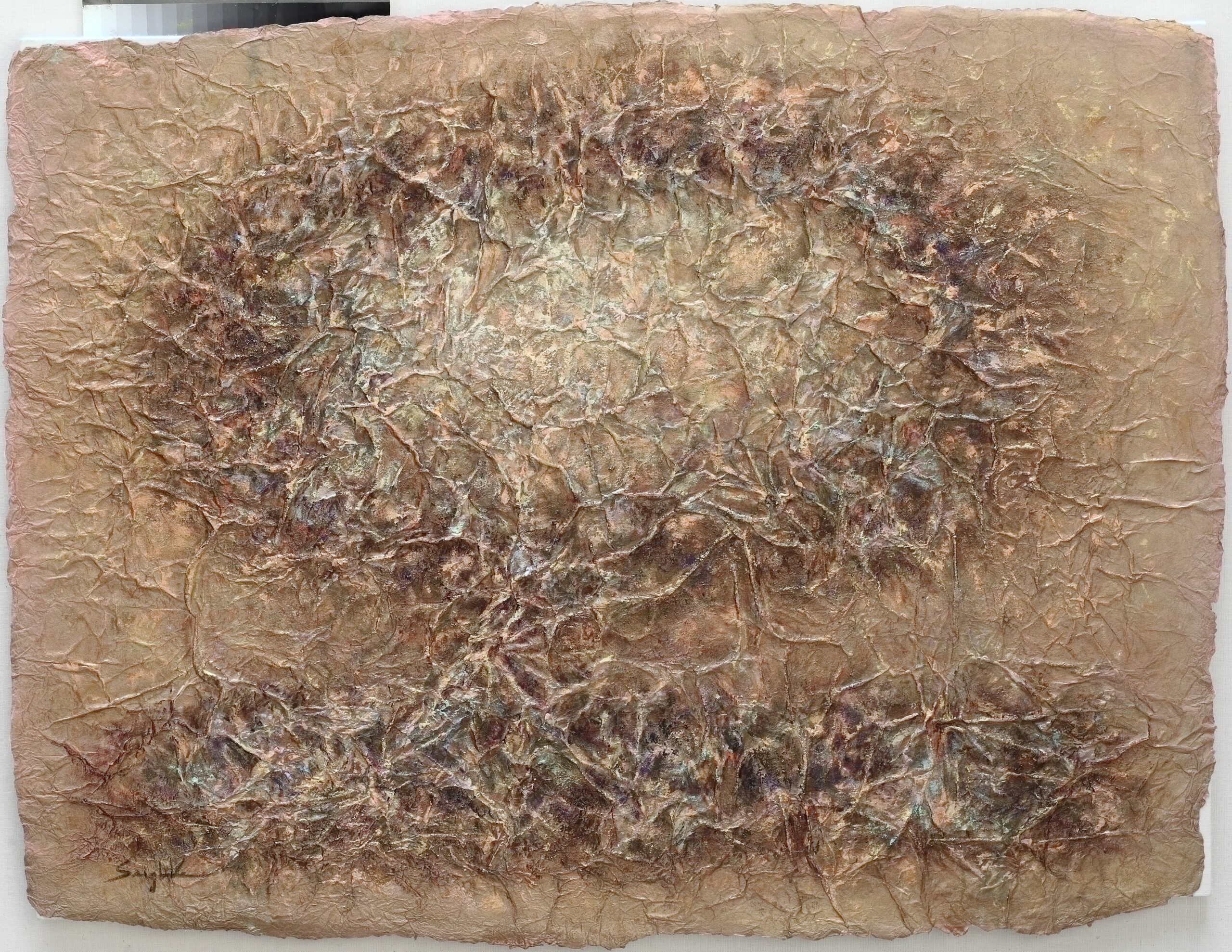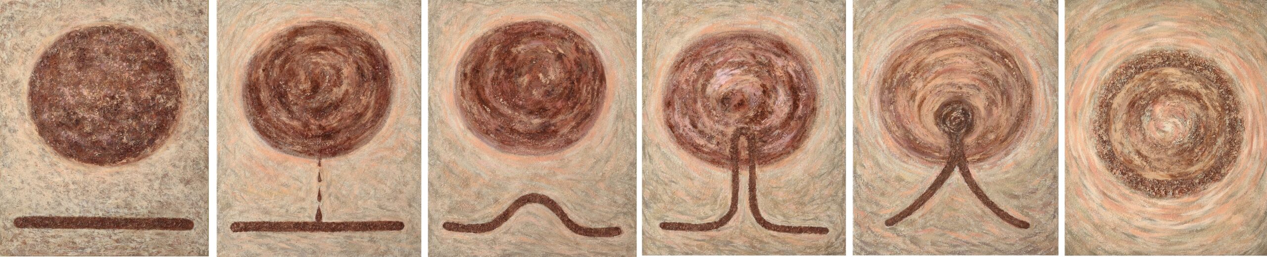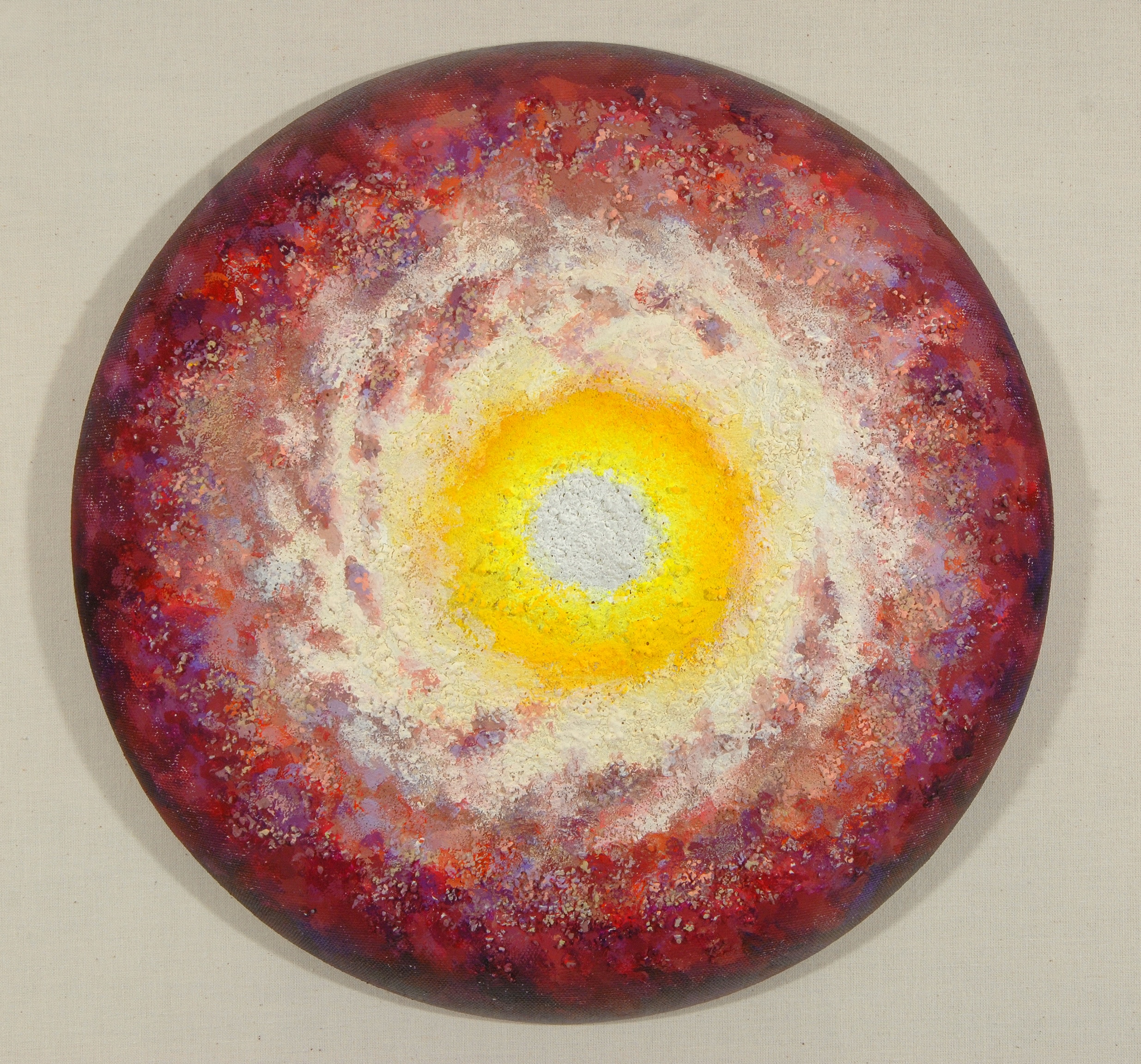 Recently, I have become interested in ‘space’ while searching for my essence and identity from a cosmic point of view. It was intended to capture the cosmic characteristics of the part and the whole, and the whole which is the part in the canvas. In the relationship between the microcosm of “human” and the universe, the mind and the Sun become one, and also Heaven and Earth become one with humans. I created the pieces thinking about the vessel that embraces the universe.