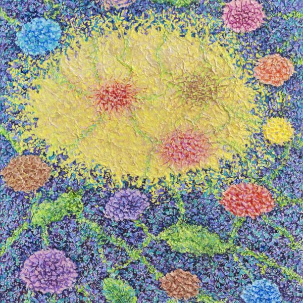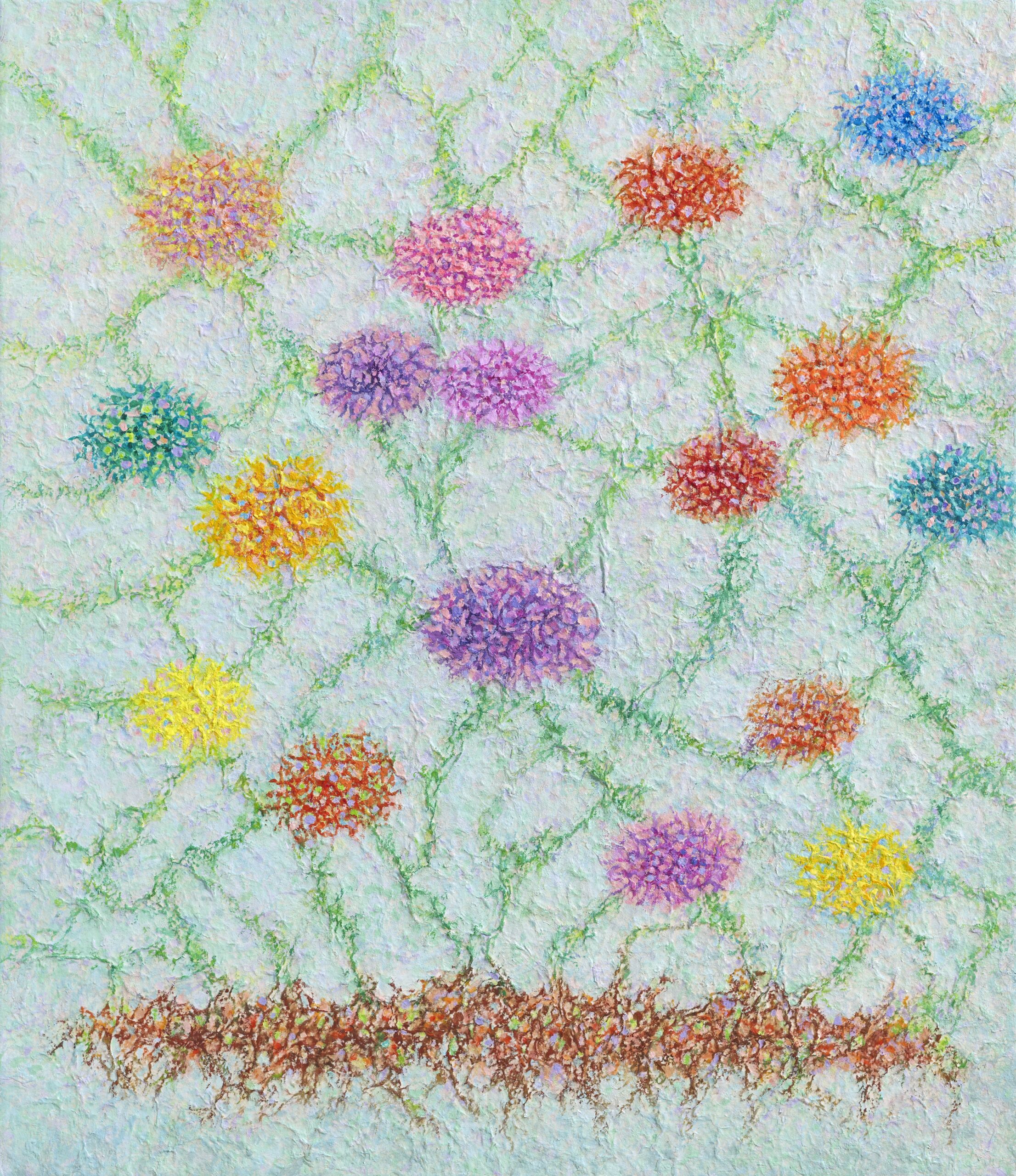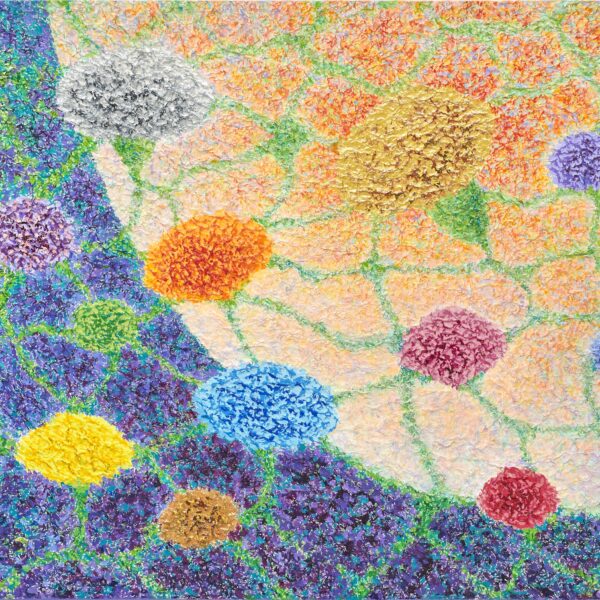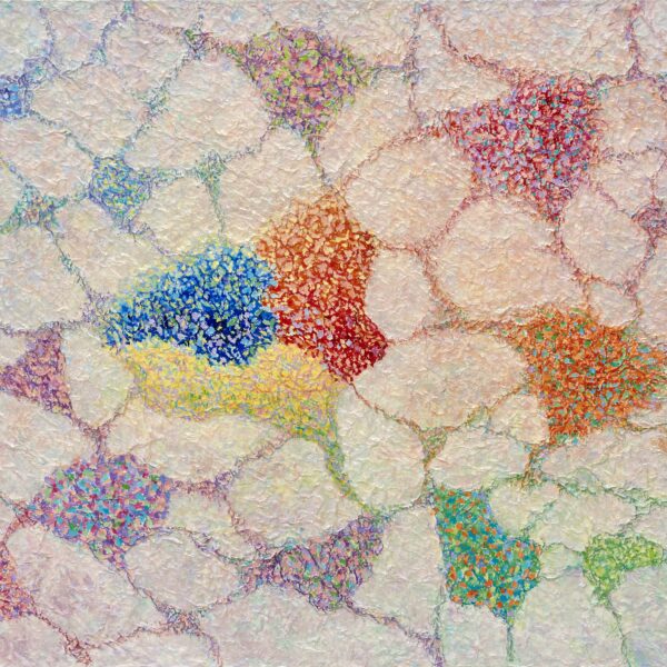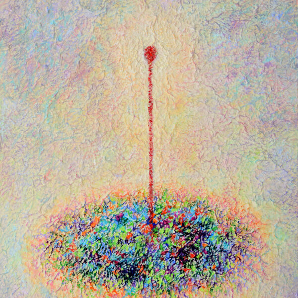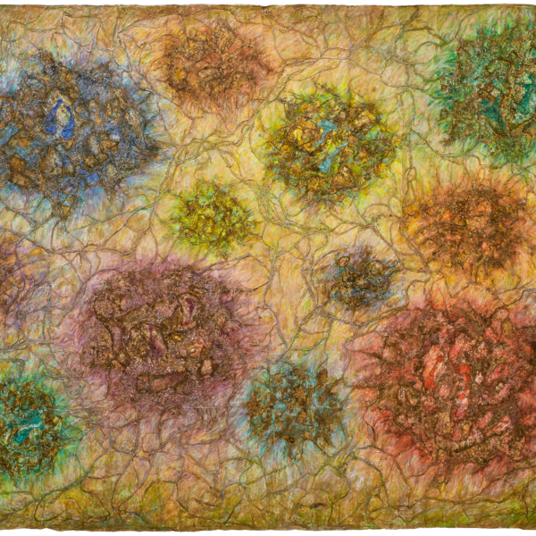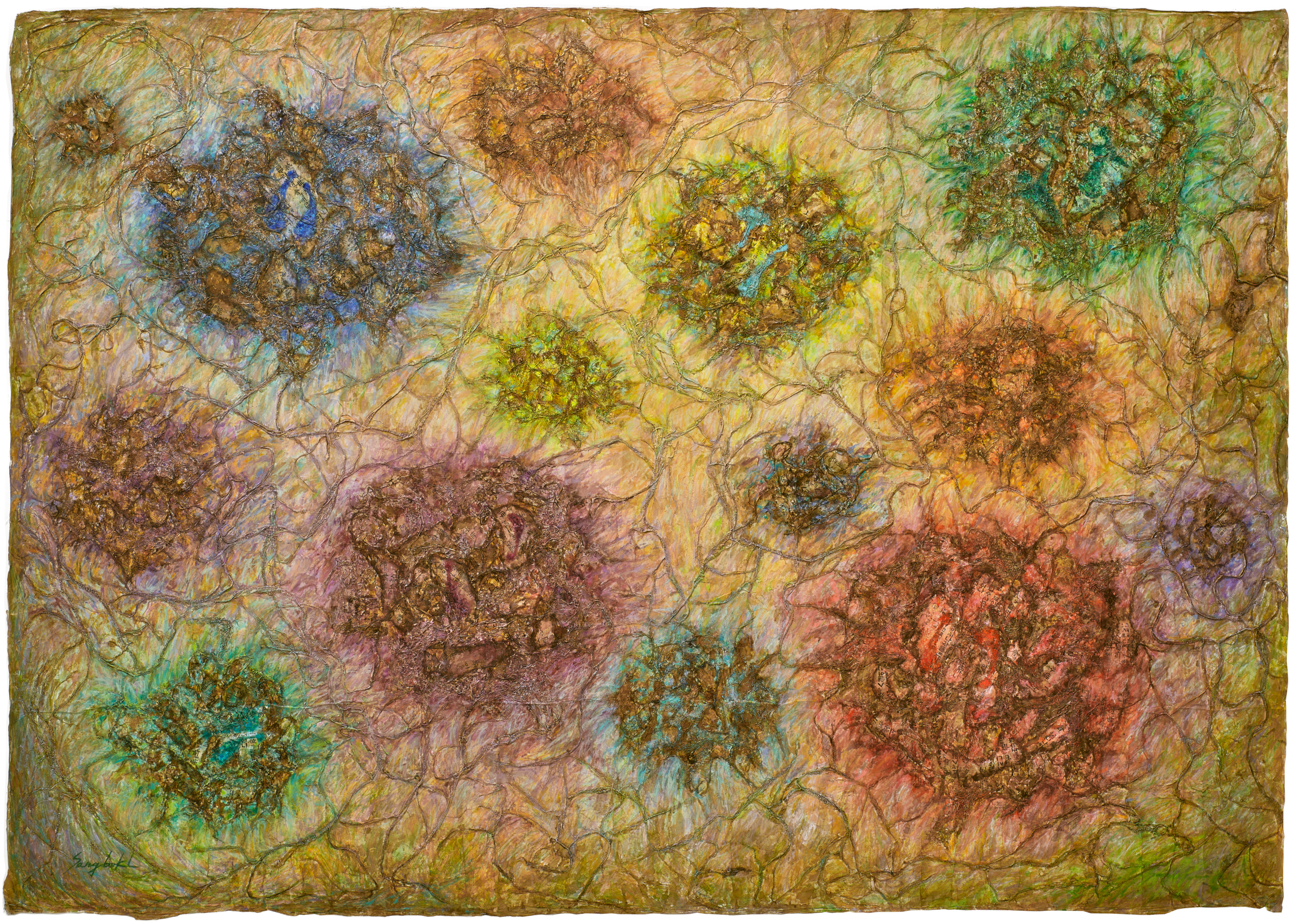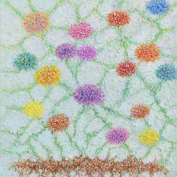 This work, The Relationship of Life, expresses my hope that an “eternal world of love and peace” may be realized through the spiritual encounter between the Creator of Heaven and Earth and all creation. In terms of technique, I used hanji (traditional Korean paper) to emphasize texture, and painted with acrylic.