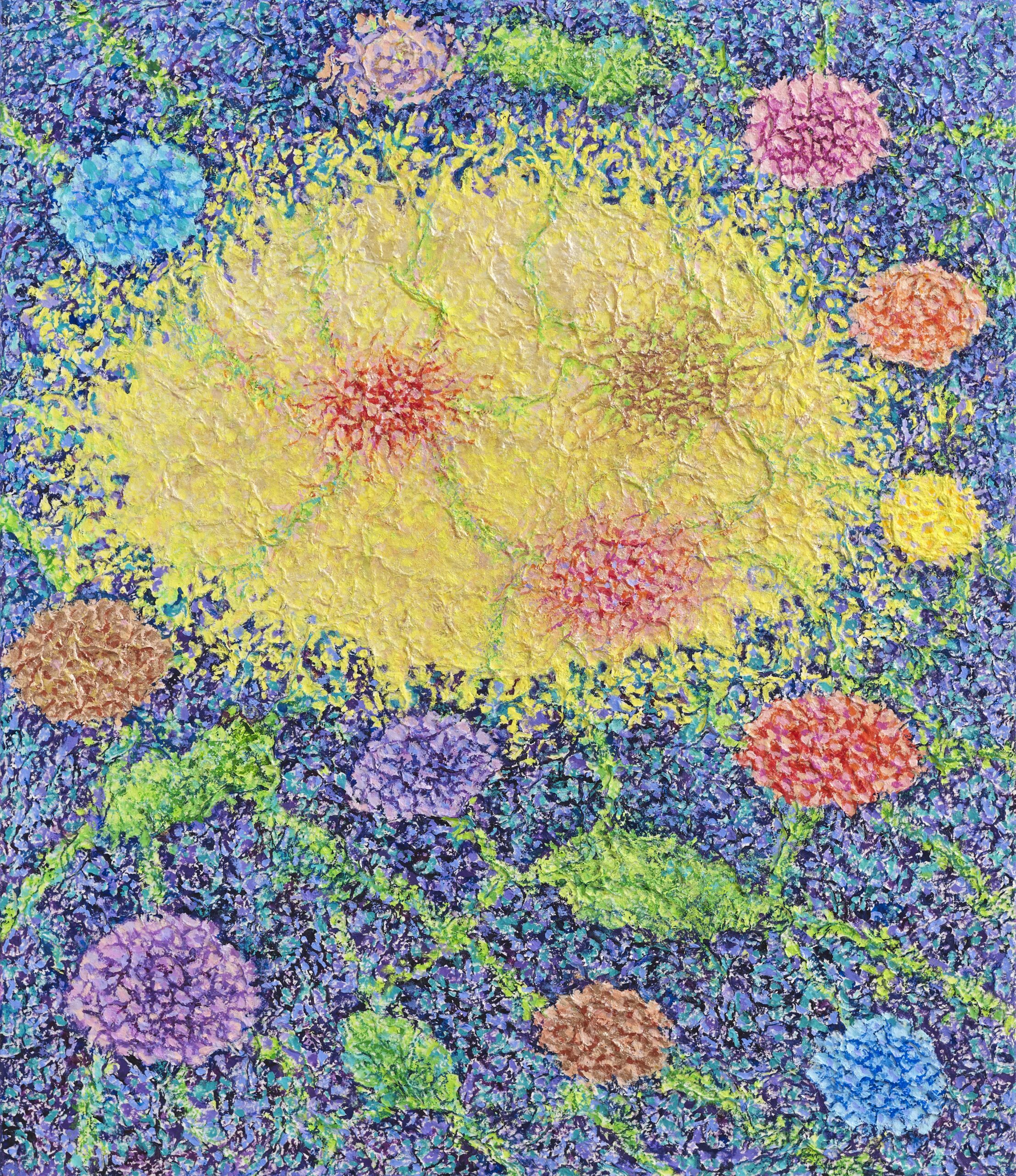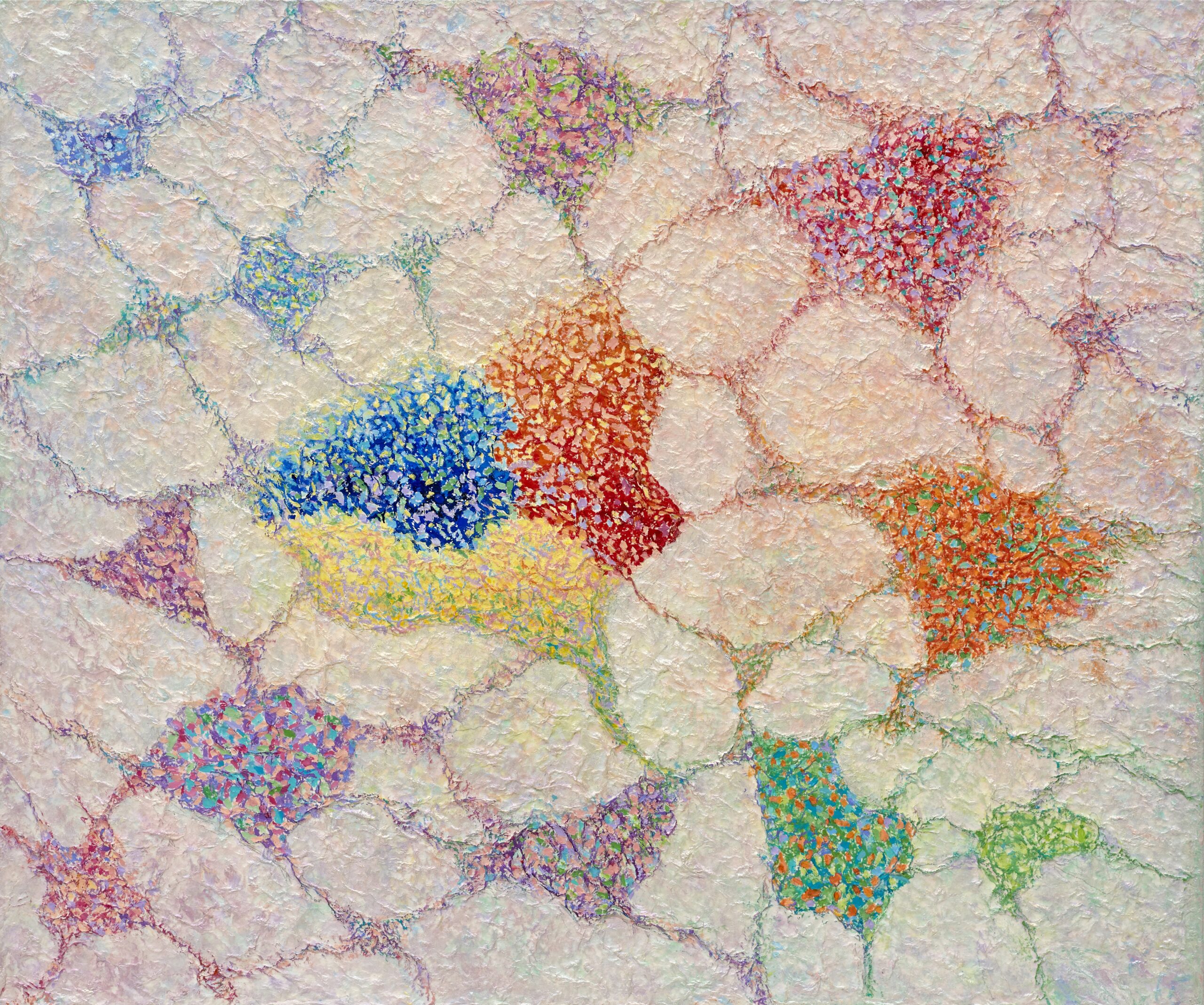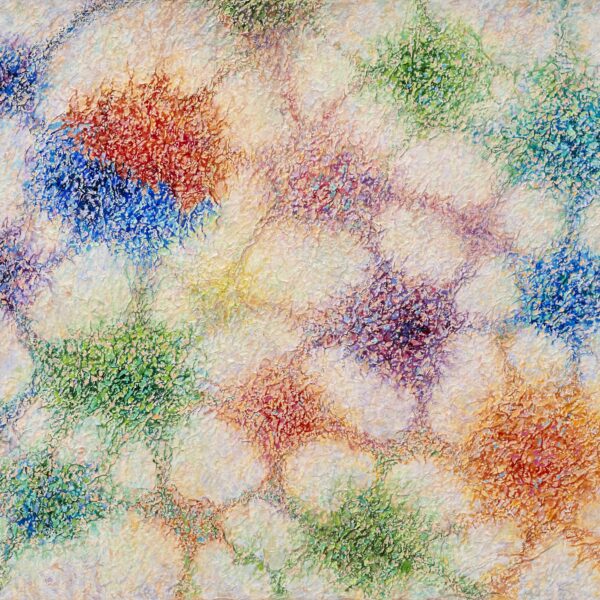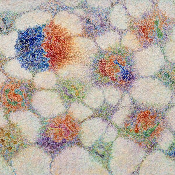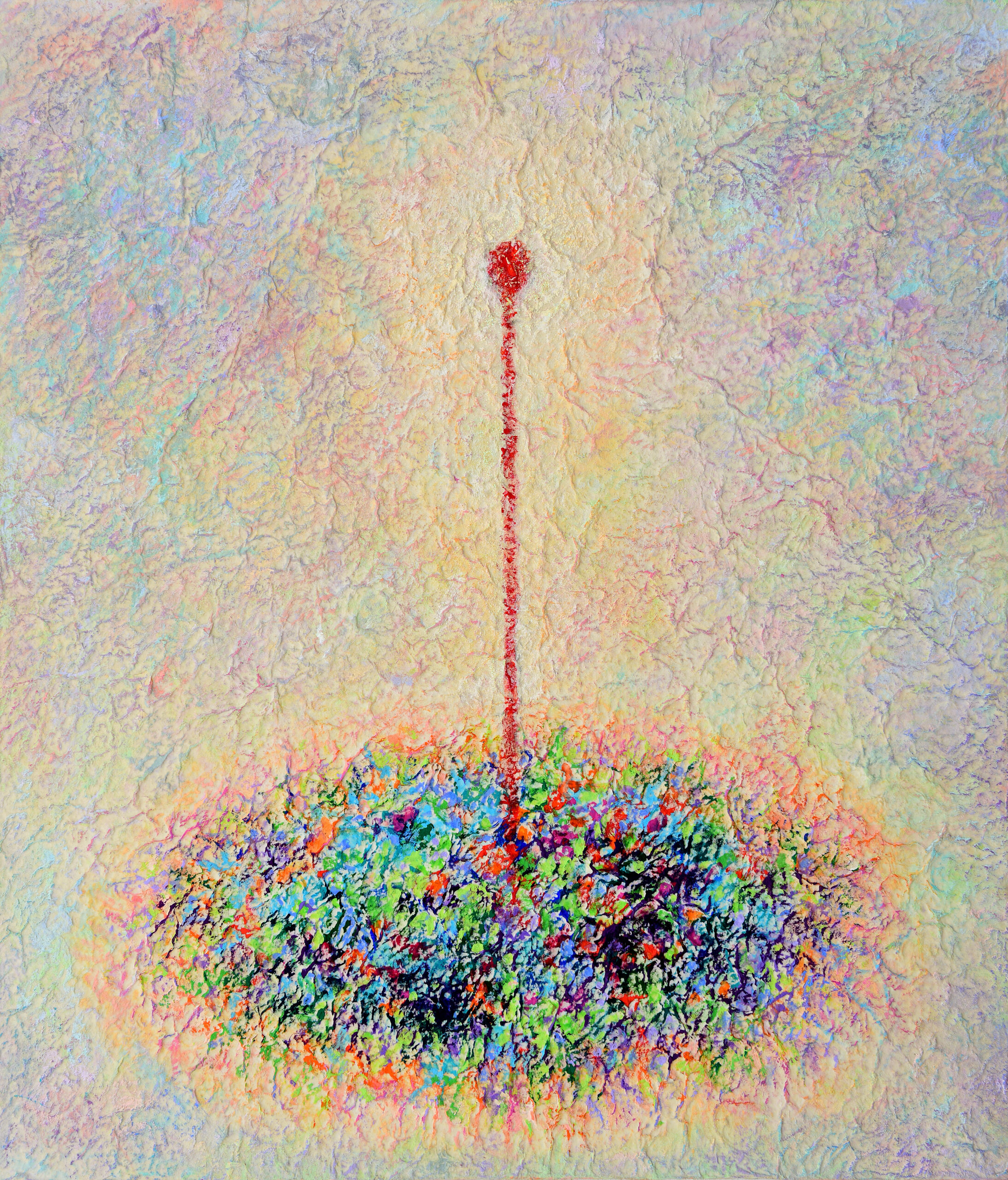 This work, The Relationship of Life, expresses my hope that an “eternal world of love and peace” may be realized through the spiritual encounter between the Creator of Heaven and Earth and all creation. In terms of technique, I used hanji (traditional Korean paper) to emphasize texture, and painted with acrylic.