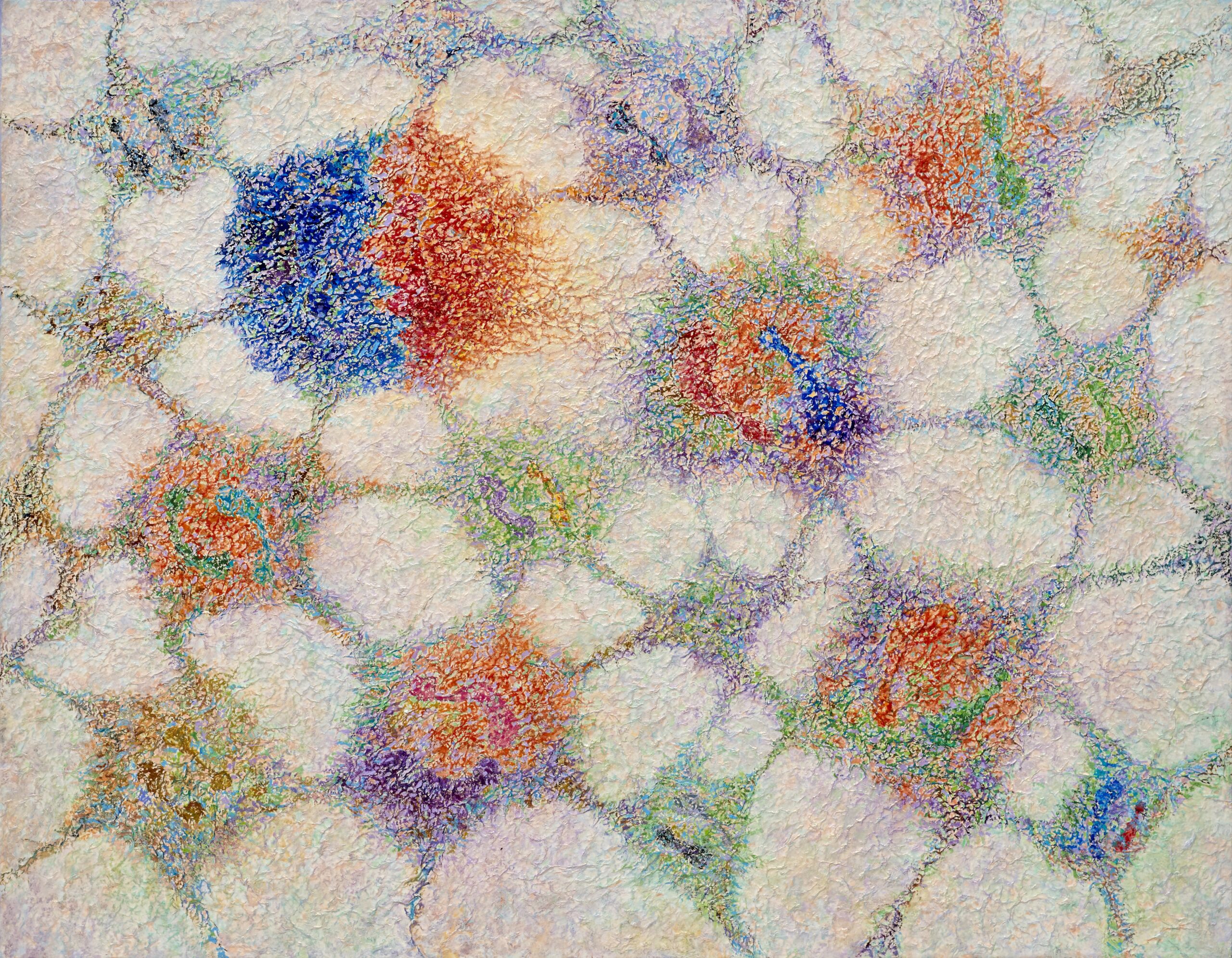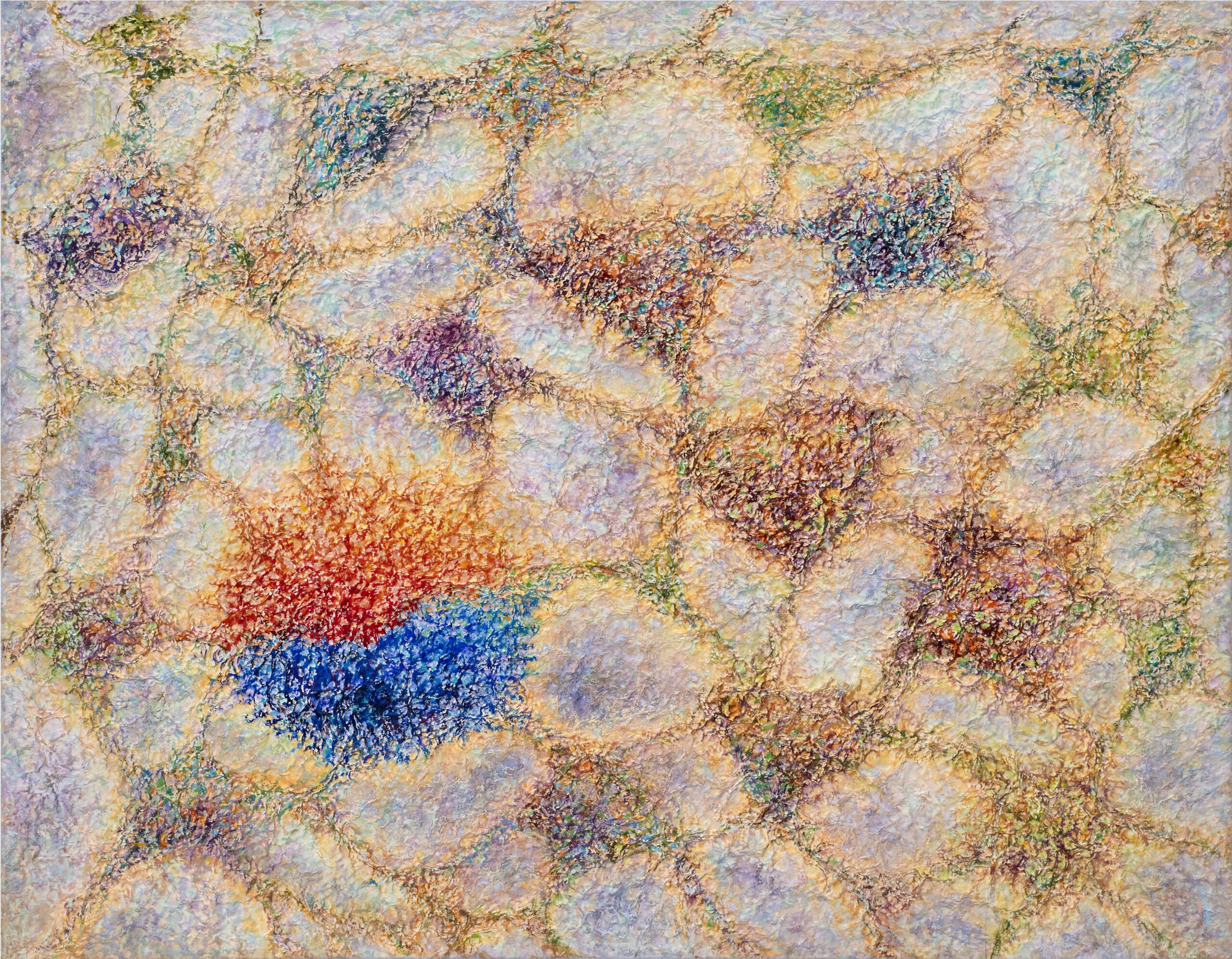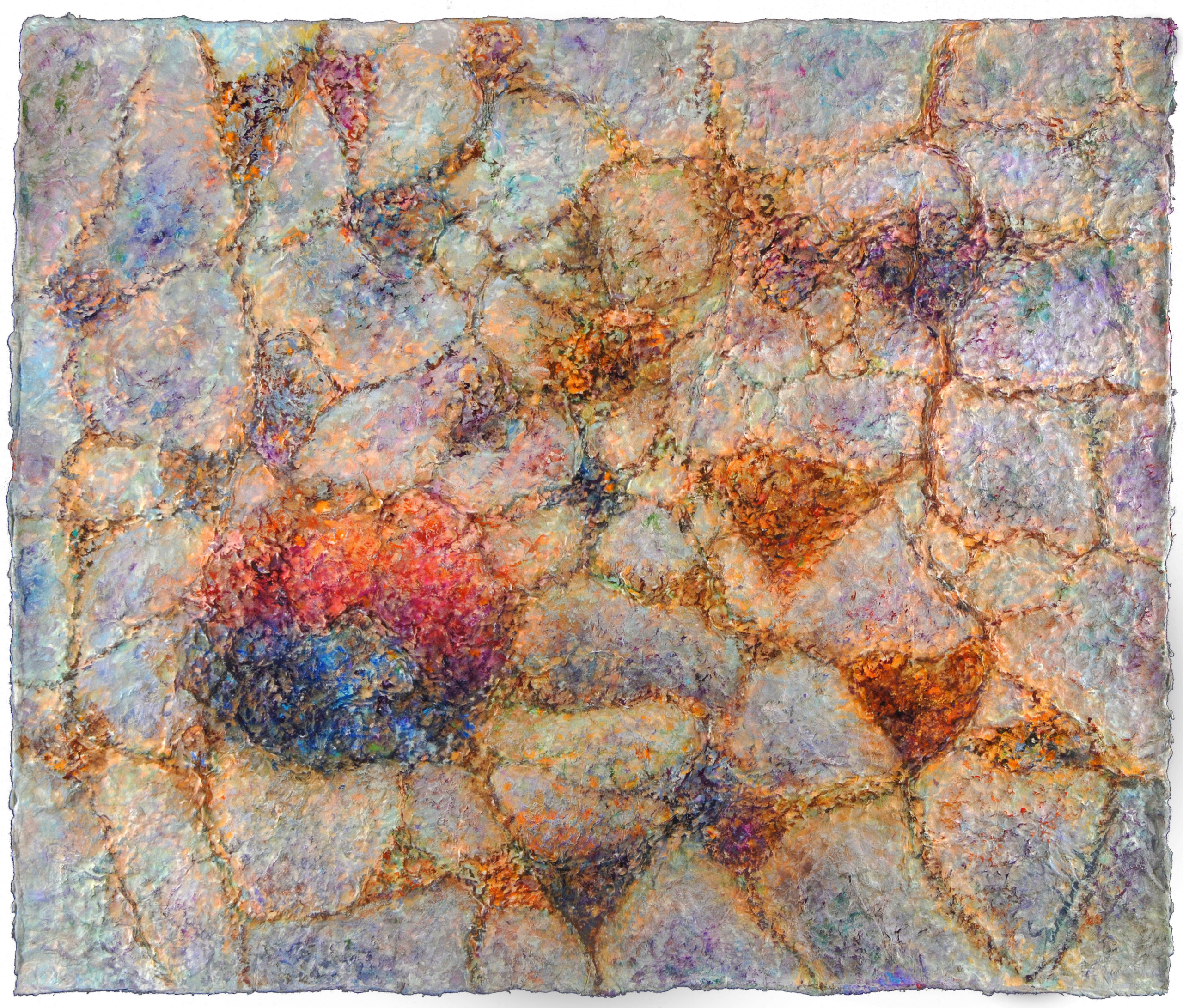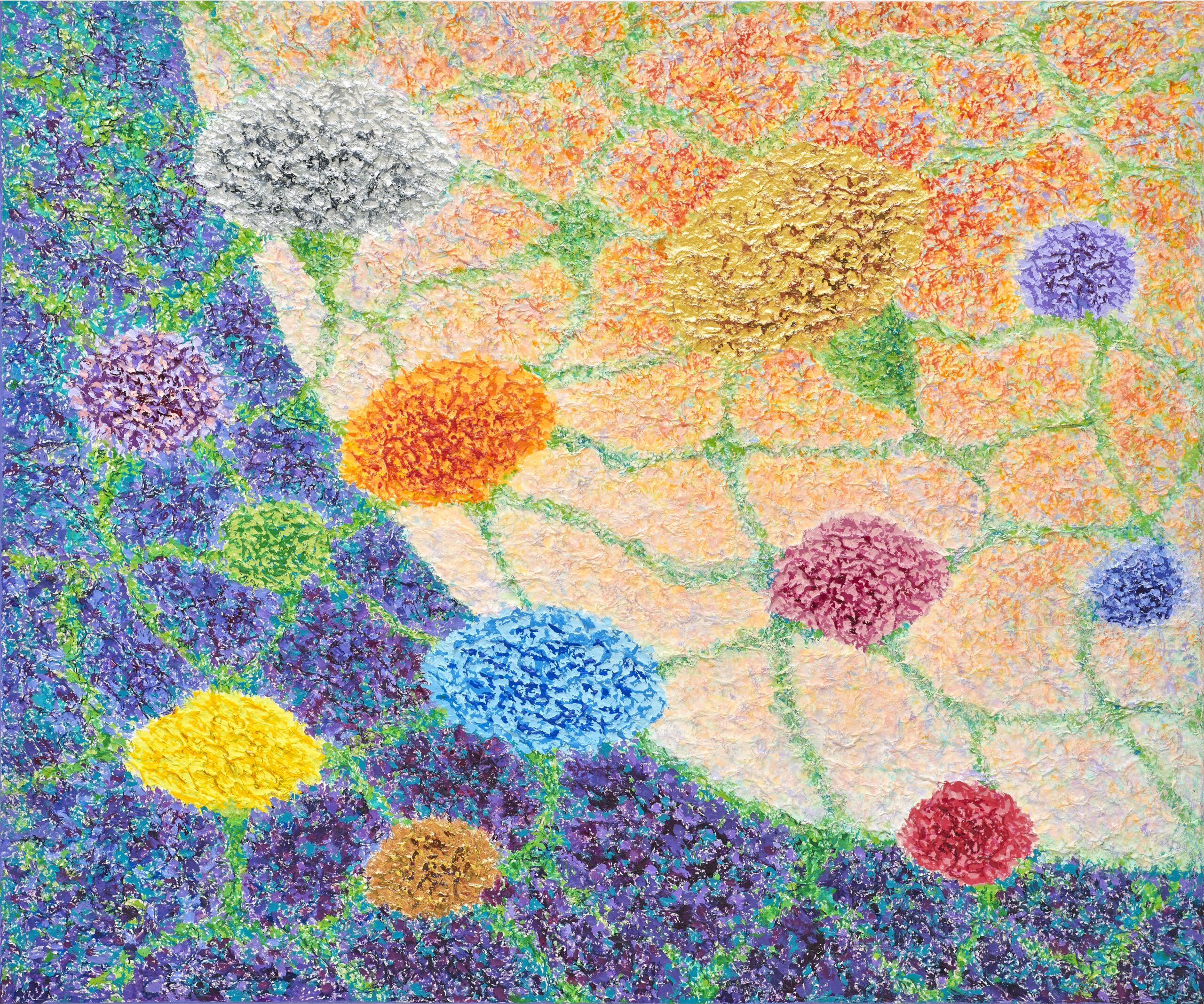 This work, The Relationship of Life, expresses my hope that an “eternal world of love and peace” may be realized through the spiritual encounter between the Creator of Heaven and Earth and all creation. In terms of technique, I used hanji (traditional Korean paper) to emphasize texture, and painted with acrylic.
